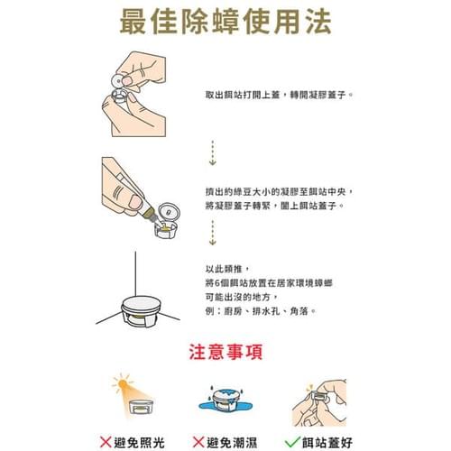 商品內含:殺蟑凝膠5g 2入、小餌站6入