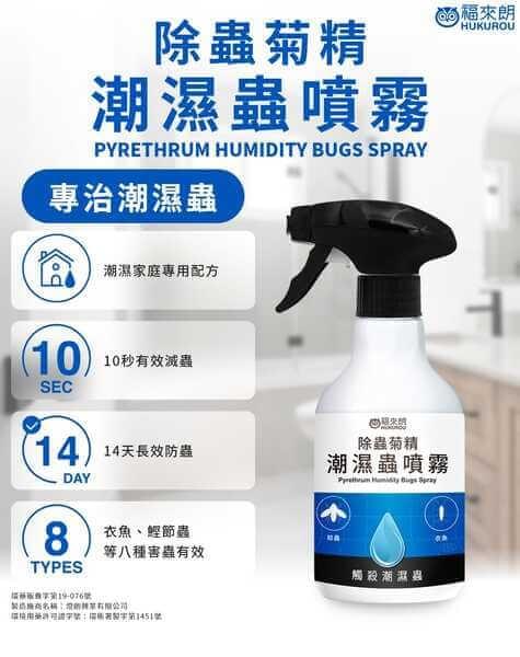 福來朗 潮濕蟲噴霧 500ml (有效對付8大居家害蟲包括白蟻、衣魚、鰹節蟲等)