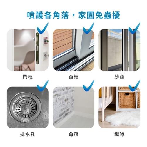 - 用途:防治蚊子、蒼蠅、蟑螂、跳蚤、螞蟻、白蟻、小黑蚊、蜘蛛